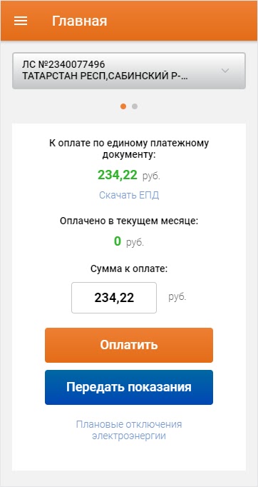 Мобильное приложение АО «Татэнергосбыт» для клиентов-физических лиц.