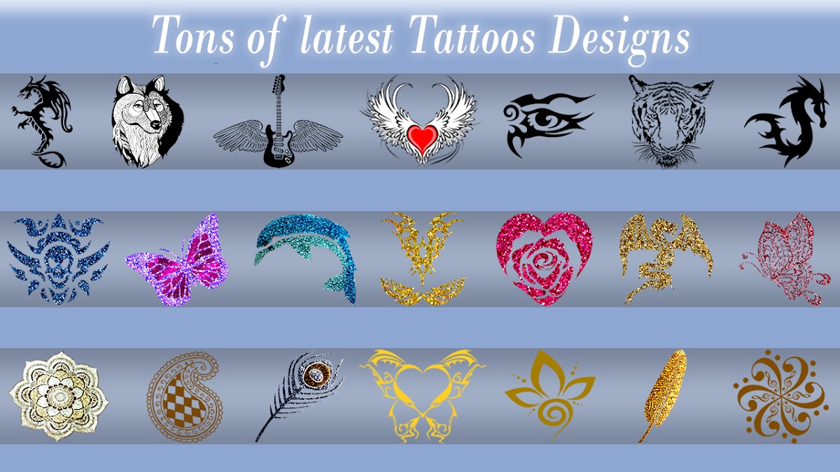 ➤ Выбрать татуировки из разных типов последних татуировок, как черные татуировки, блеск тату, тату и METALIC Татуировки.