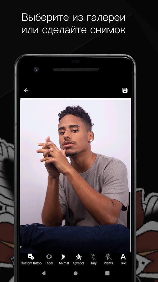С помощью нашего приложения вы можете настроить каждый элемент выбранного вами дизайна татуировки, чтобы делать тату. Вы можете управлять процессом своего воображения, изменять форму, цвет и яркость тату, а также подбирать его в соответствии с выбранной фотографией.