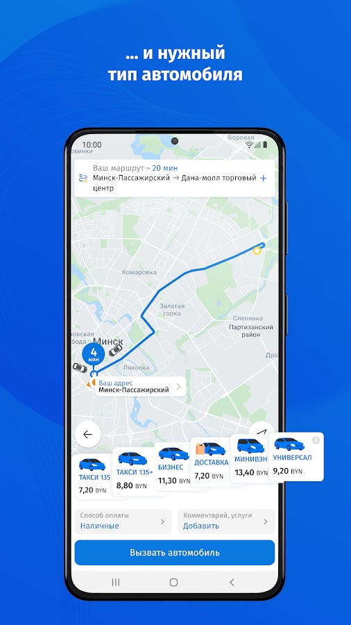 Доступность типов авто и дополнительных опций зависит от города, в котором используется приложение Такси 135.