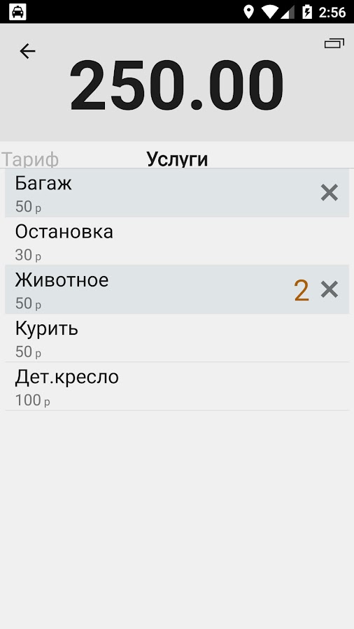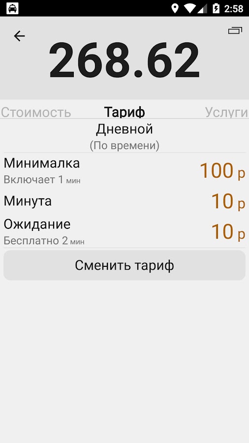 Главная фишка нашего таксометра — вы можете менять тариф на ходу, например начав путь в городе включаете городской, а как вы выехали за город, можете переключиться на загородный. Только учтите, что при смене тарифа не все параметры меняются, например параметры «минималки» остаются от стартового тарифа.
