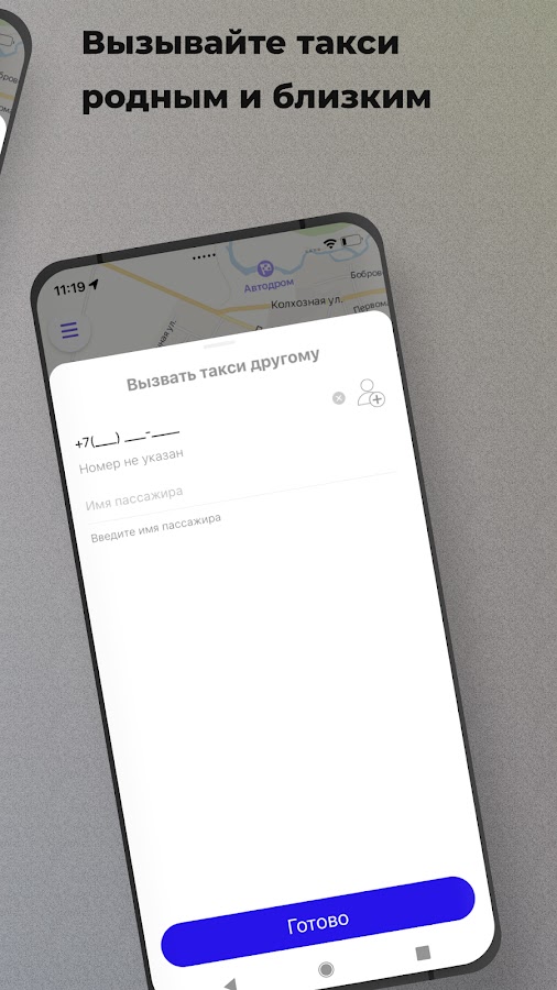 Используйте опцию “Вызвать такси другому” в разделе “Пожелания” и укажите его номер телефона. Когда такси подъедет, на указанный номер придет СМС, а вам — сообщение в приложении.