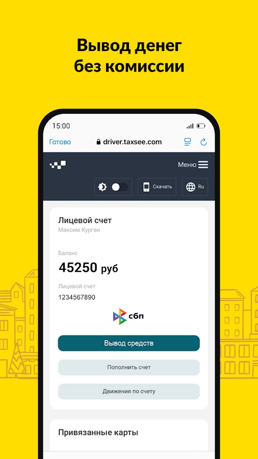 Это хороший вариант подработки для тех, кто предпочитает ежедневный доход. Оплата поездок — день в день. Наличные — сразу на руки, безнал — на кошелек в приложении. Перевести деньги с кошелька можно по СБП, без комиссии, на любую российскую карту, без ограничений по сумме.