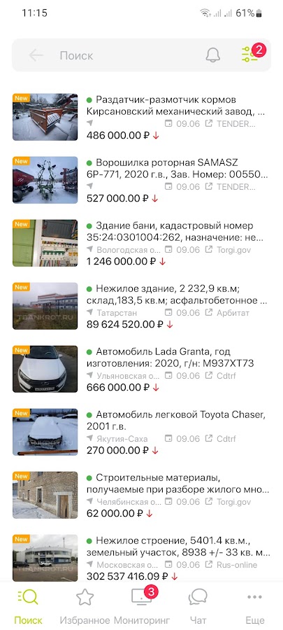 • Автоматически отслеживать новые интересные лоты по заданным поисковым фильтрам, в том числе с получением персонального уведомления.