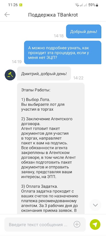 В случае возникновения проблем технического характера обращайтесь на app@tbankrot.ru, и мы постараемся помочь вам в самые короткие сроки.