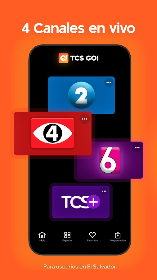 TCS Go! — официальное приложение Telecorporación Salvadoreña (TCS), ведущего медиаконгломерата в Сальвадоре. Каналы 2, 4, 6 и TCS PLUS.