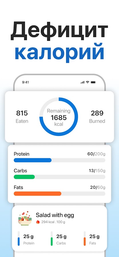 • Рассчитывает 15%, 20% и 25% дефицит калорий для безопасного снижения жировой массы