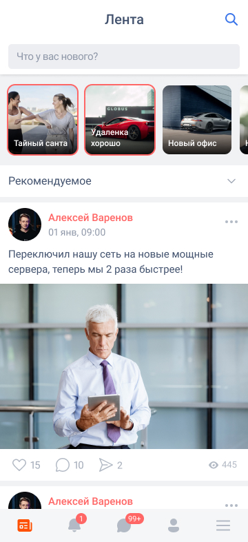 ТЕАМ — это корпоративная социальная сеть для совместной работы внутри Банка. С ее помощью сотрудники могут быстро находить контакты своих коллег, получать ответы на вопросы, делиться экспертной информацией, обмениваться документами, координировать работу проектных групп, генерировать и обсуждать идеи.