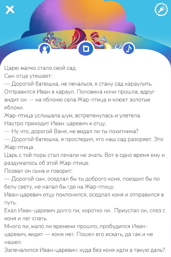 Зайдите в раздел сказок, выберите подходящую и включите текст. Автоматически