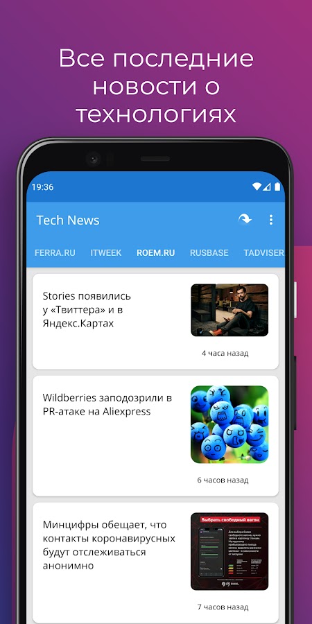 Быстрое и простое приложение для чтения ленты новостей о технологиях!