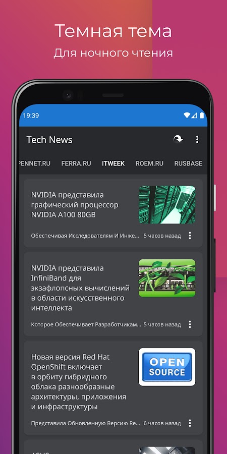Tech News — это приложение для чтения RSS-каналов, которое, в отличие от