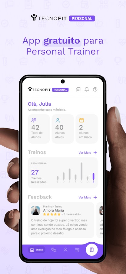 Максимизируйте свое время и сделайте свои услуги профессиональными с помощью Tecnofit Personal, идеального приложения для персональных тренеров, которые работают как с онлайн-консультациями, так и с личными услугами.