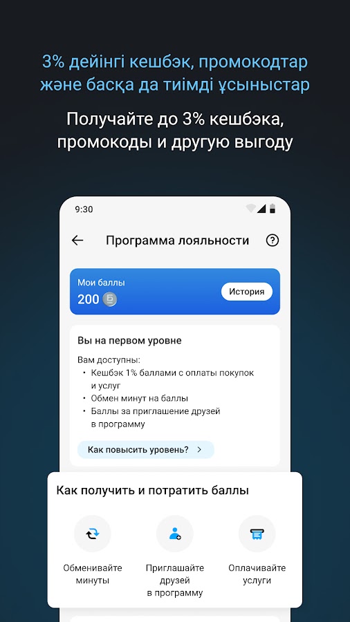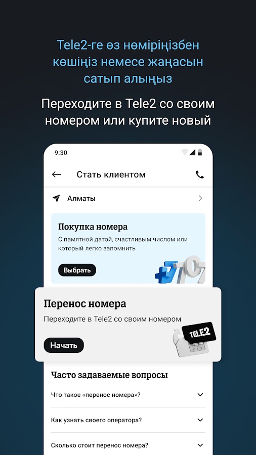 • Нөміріңізбен біздің желіге өқтіңіз немесе жаңасын сатып алыңыз