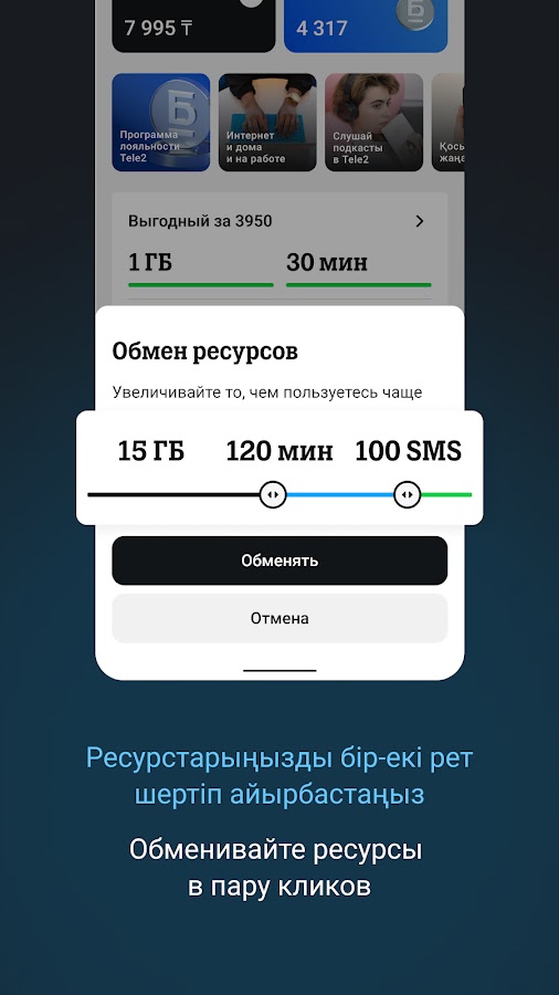 • Меняйте ресурсы между собой и переводите другим клиентам Tele2