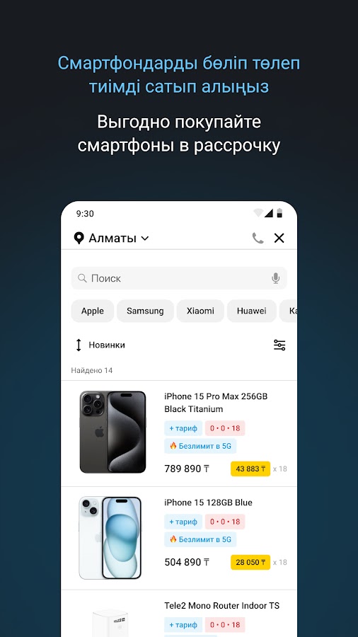 • Тарифі қосылған смартфонды бөліп төлеумен сатып алыңыз