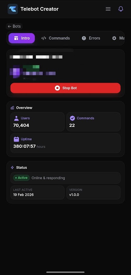 — Создавайте неограниченное количество Telegram-ботов со своего телефона