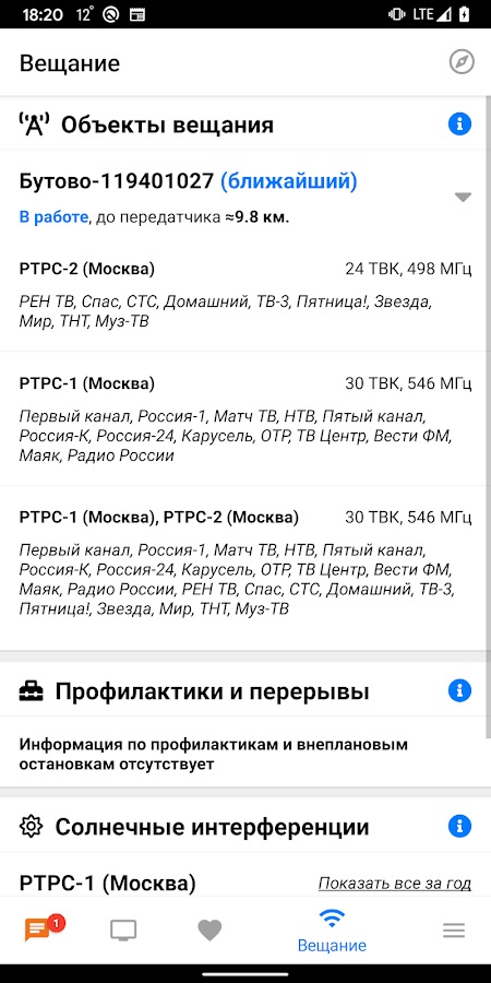 — дополнительно публикуются сведения о плановых профилактиках и периодах солнечных интерференций цифрового эфирного ТВ;