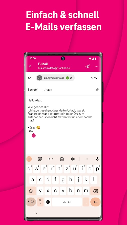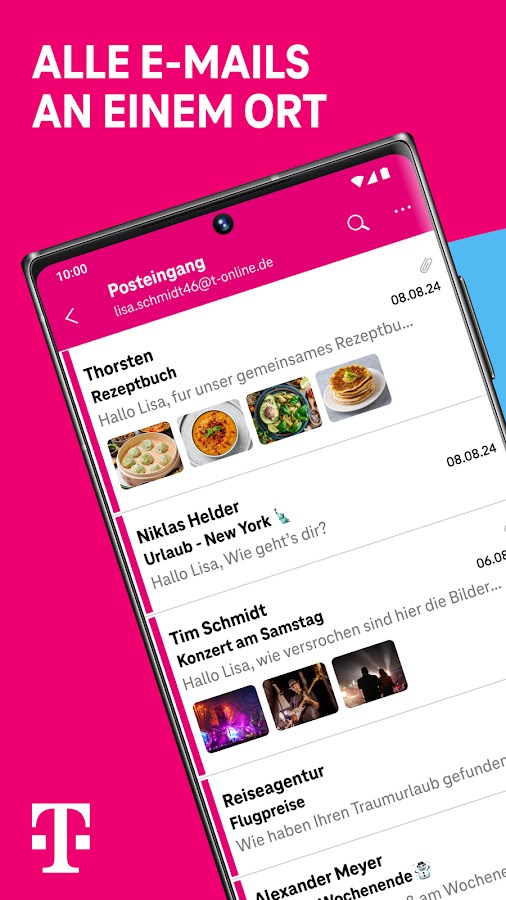 • Можно использовать для нескольких учетных записей электронной почты @t-online.de и @magenta.de