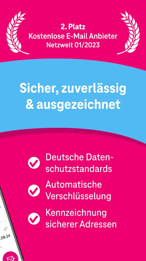 • «Telekom Mail впечатляет своими функциями и условиями и является одним из самых безопасных бесплатных провайдеров электронной почты». (pcwelt.de, август 2024 г.)