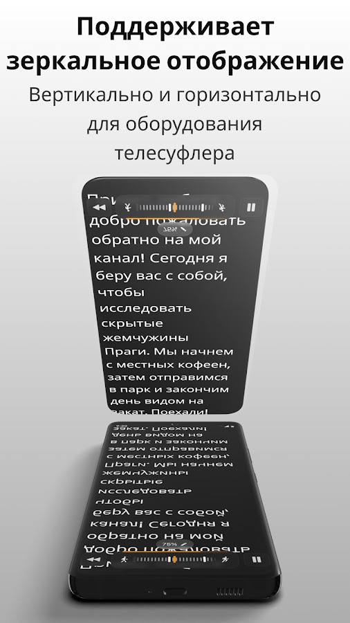 Читайте сценарии, тексты песен и речи в удобном телесуфлёре с функциями отражения, изменения скорости и шрифта