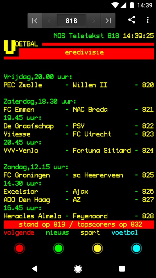 NOS разработала специальное приложение NOS Teletext для устройств Android. С помощью этого приложения можно быстро получить доступ к страницам телетекста NOS, например, к текущим общим и финансовым новостям, информации о дорожном движении и спортивным результатам.
