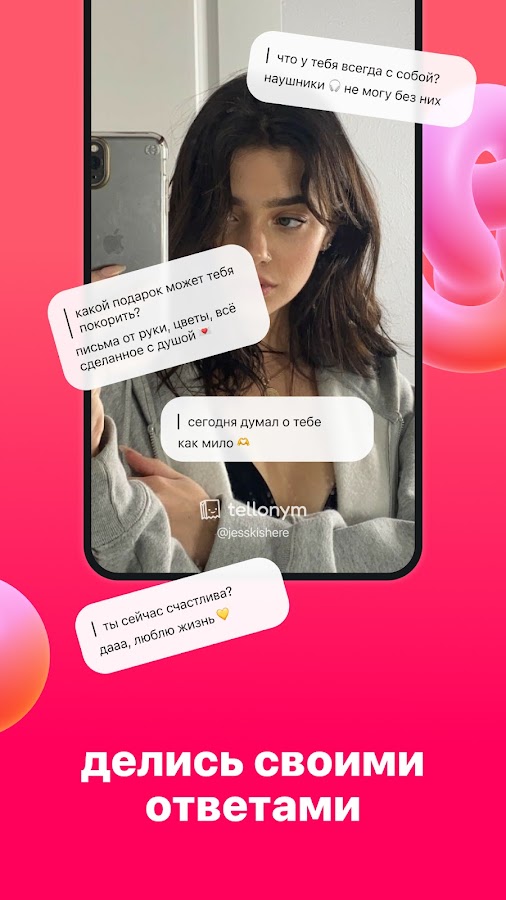 Tellonym — это простой способ почувствовать себя ближе к друзьям. Узнайте больше о них, посмотрите, о чем они говорят, и, наконец, выслушайте их честные мнения.