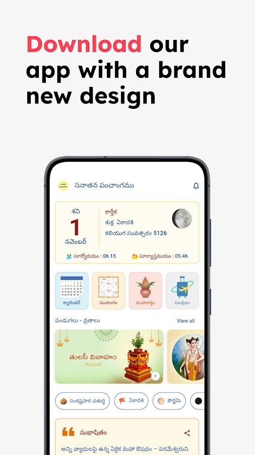 Приложение «Календарь на 2026 год» на телугу для индуистов по всему миру.
