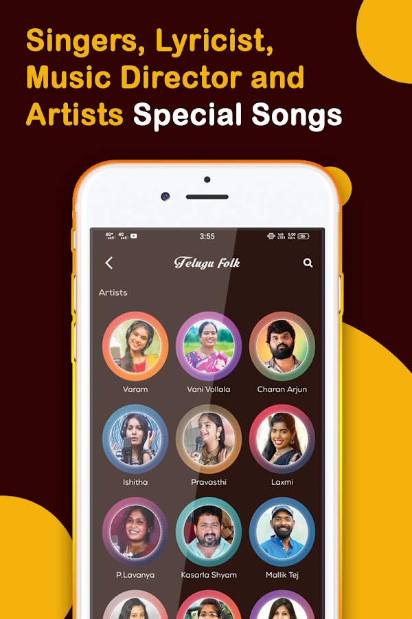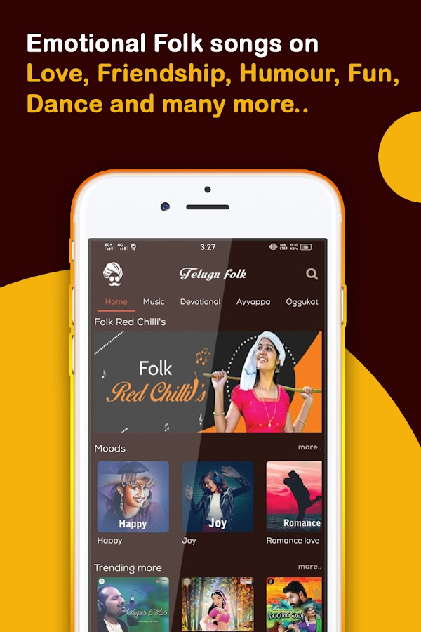 Telugu Folk — это приложение с традиционной и народной музыкой. Фолк — это разновидность классической музыки, музыка, созданная сельскими жителями и племенами. Эта музыка, импровизированная, вдохновлена великими поэтами Южной Индии, восхваляет, воспевает и воспевает радость преданному Господу Раме, Кали, Ганеше, Шиве, а также Христу и исламу, которые представлены в западной и арабской музыке. Множество песен и музыки на телугу собраны в одном месте. Альбомы отражают культуру, традиции, эмоции и радость.