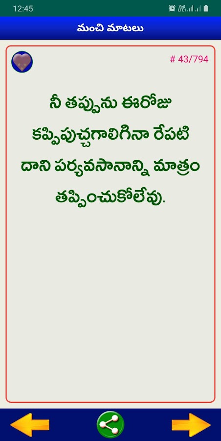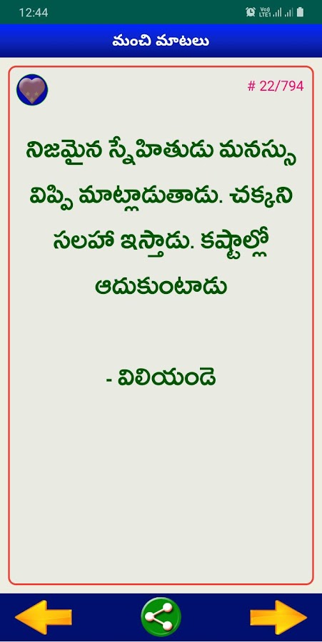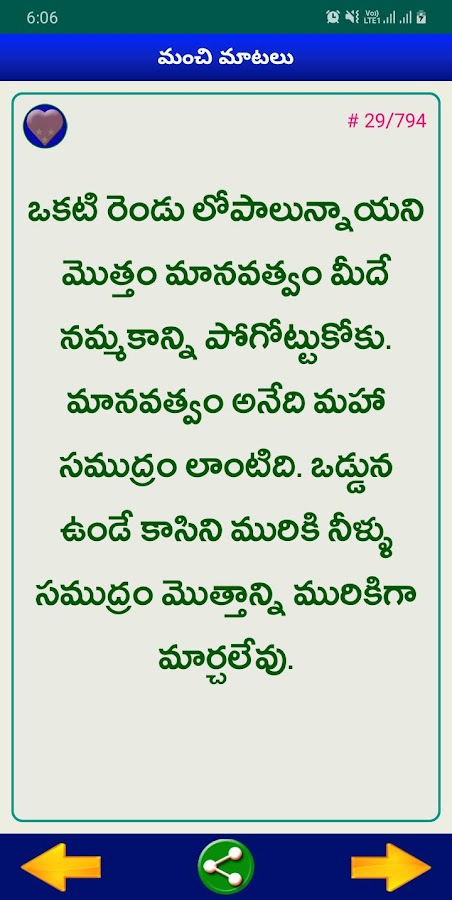 Аутентичный контент на телугу: Все цитаты написаны на красивом языке телугу и затрагивают ваше сердце.