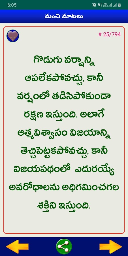 Скачайте приложение Telugu Motivational Quotations для Android бесплатно - последняя версия (1.07) уже доступна для установки на ваш телефон или планшет.