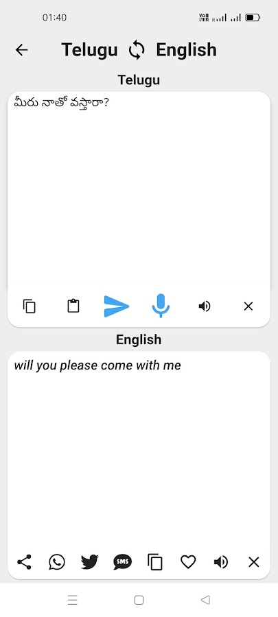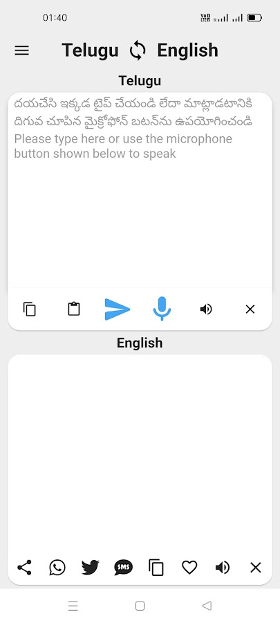 Приложение переводчик речи с английского на телугу.