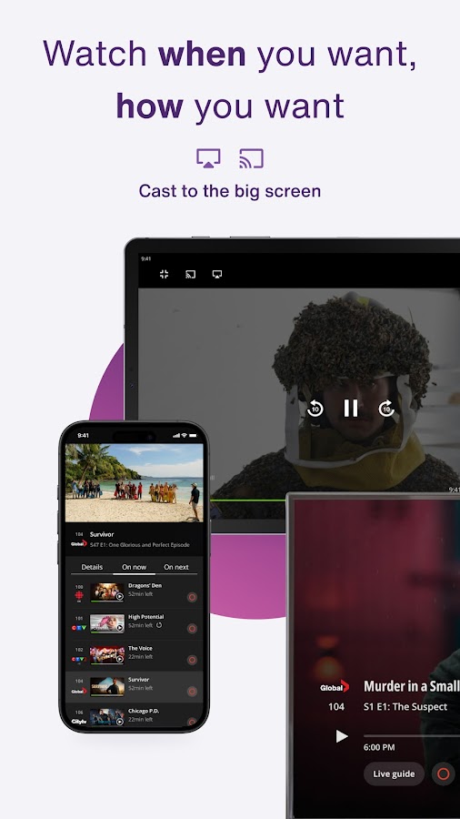 С помощью приложения TELUS TV+ смотрите прямые трансляции и фильмы по запросу на своем смартфоне или планшете.