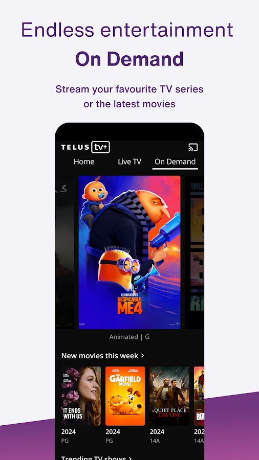 Приложение TELUS TV+ доступно для загрузки на мобильные устройства под управлением Android 8 и выше.