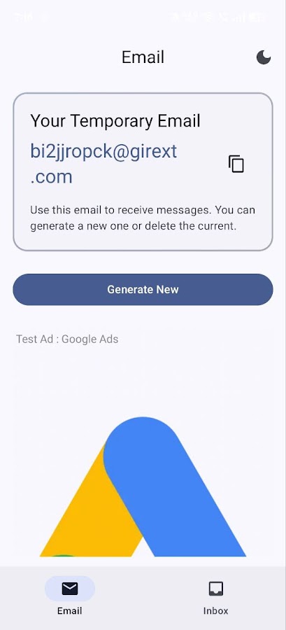1️⃣ Нажмите «Сгенерировать адрес электронной почты», чтобы получить временный адрес.