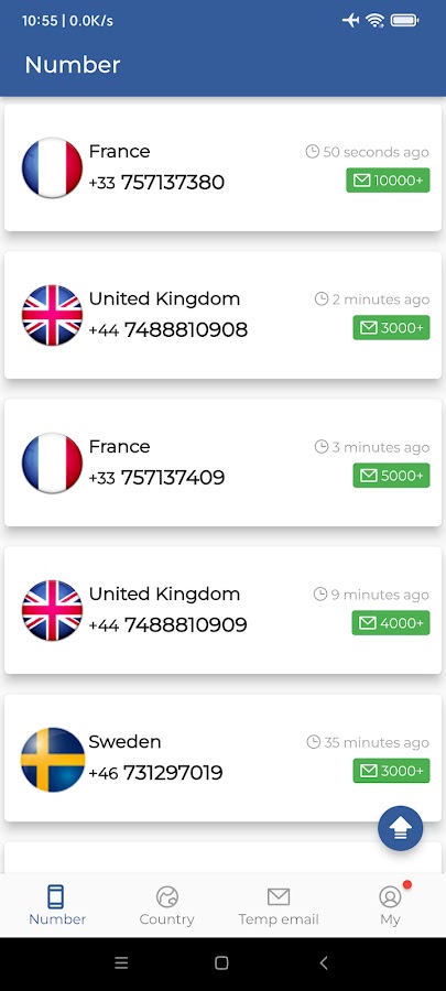 Бесплатно предоставляет более 20 стран мира, таких как США, Великобритания, Франция, Китай и Швеция, сотни временных виртуальных номеров, анонимные почтовые ящики, используемые для регистрации учетных записей для различных приложений и веб-сайтов, получения кодов подтверждения по SMS. , и защитите вашу личную конфиденциальность от утечки.