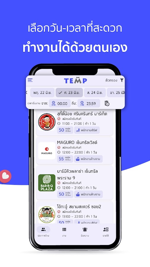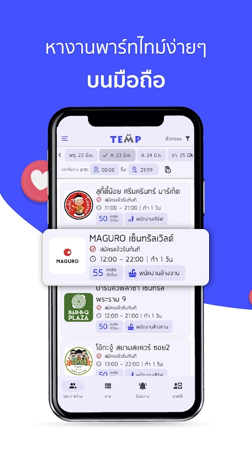 Скачайте приложение TEMP หางานพาร์ทไทม์ จ่ายรายวัน для Android бесплатно - последняя версия (3.4.12) уже доступна для установки на ваш телефон или планшет.