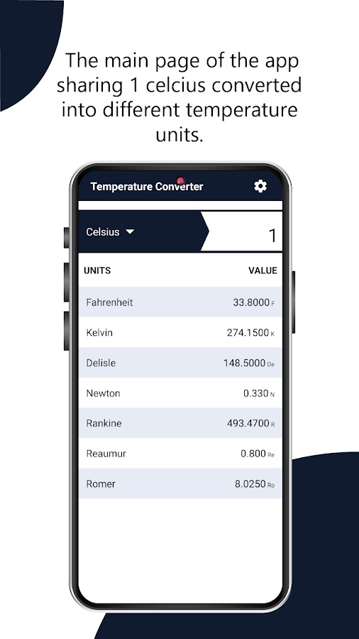 📌 Широкий диапазон поддерживаемых единиц: конвертируйте несколько единиц измерения температуры, включая Цельсия, Делиля, Фаренгейта, Кельвина, Ньютона, Рэнкина, Реомюра и Ромера.