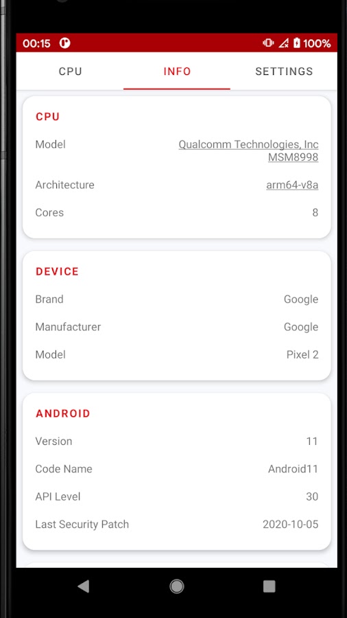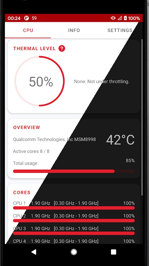 С помощью функции проверки температуры телефона вы сможете подробно оценить производительность процессора вашего устройства с помощью таких функций, как загрузка процессора на каждое ядро, мониторинг частоты процессора и системная информация. Вы будете точно знать, как работает каждое ядро и достигает ли ваш процессор максимальной частоты.