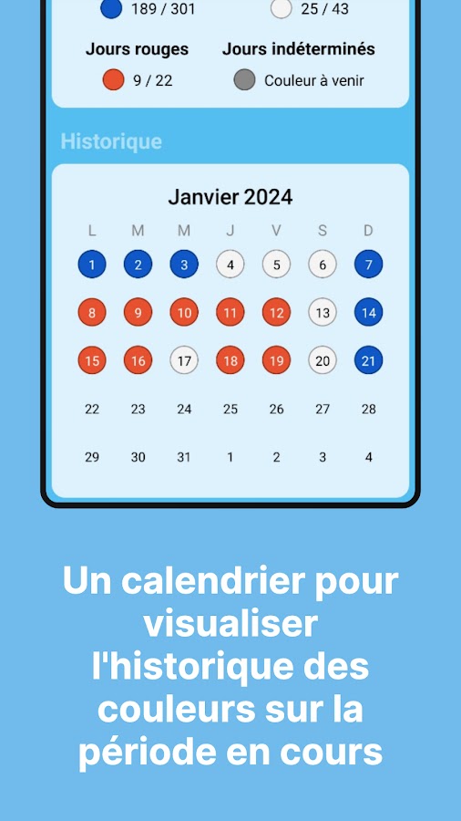 Кроме того, наше приложение Tempo EDF: Blue, White, Red предоставляет вам историю дней Tempo за текущий период, начиная с 2015 года.