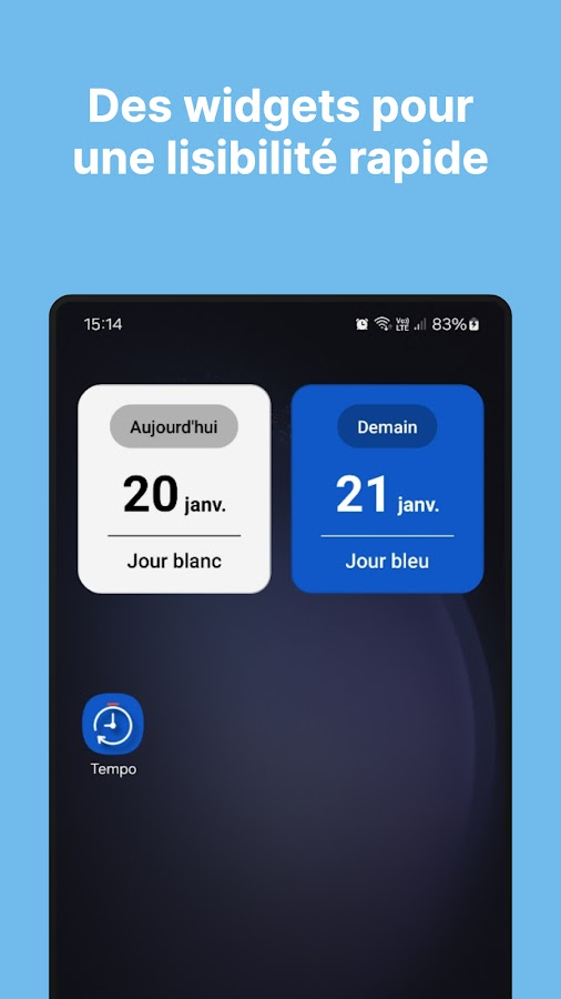 Приложение Tempo Bleu, Blanc, Rouge — это бесплатное приложение без рекламы, которое информирует вас о цветах сегодняшнего и завтрашнего дня. Tempo совместим со смартфонами и планшетами Android (также может быть iPhone, iPad, Apple Watch и macOS в App Store).