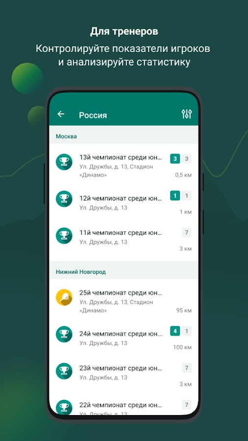 Приложение помогает не ошибиться с точной геопозицией матча — при создании турнира «Табло в кармане» автоматически считывает местоположение организатора и подсказывает верный адрес. Это помогает избежать регистрации соревнования с неверными данными о месте его проведения.