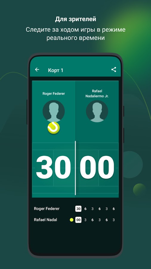 Теперь легко быть причастным к успехам ребенка во время тренировок и выездных матчей! Если организатор турнира или тренер будет использовать «Табло в кармане» для отображения хода соревнования, то родители смогут следить за результатами игры. В режиме реального времени представлены подробные данные о матче: о сыгранных сетах, о текущем гейме, о владении мячом конкретным игроком.