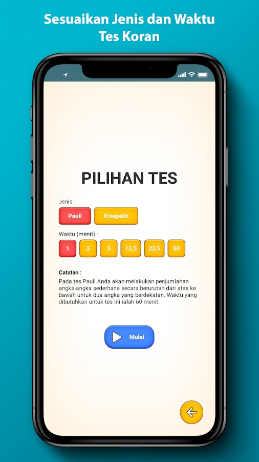 Ежедневная практика Тес Корана улучшит вашу способность мыслить. Продолжительность теста Паули составляет 60 минут, с инструкциями «линия» каждые 3 минуты. Продолжительность теста Крепелина составляет 22,5 минуты. Каждая серия длится 30 секунд, а количество инструкций «ход» составляет 45 раз. Тесты CPNS и BUMN обычно используют тест Паули.