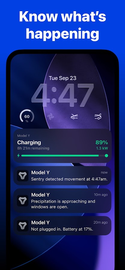 — Получайте уведомления о поездках, зарядке, событиях Sentry и многом другом