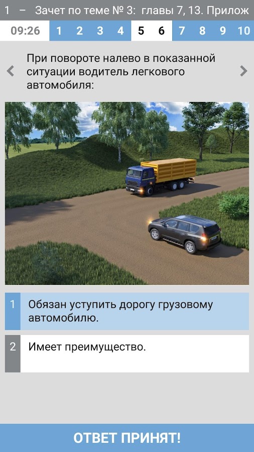В настройках приложения можете включить режим «Решать задачи вслепую», благодаря которому после ввода ответа на вопрос задачи отобразится надпись «ОТВЕТ ПРИНЯТ», а результаты будут выданы только после решения всего билета. Также можно включить ограничение в один неверный ответ и проверяйте себя как на экзамене в ГАИ.