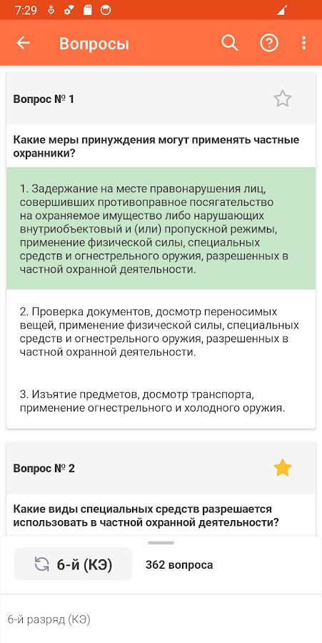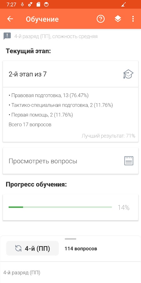 — режим «Обучение», который позволяет поэтапно изучить все вопросы выбранного разряда