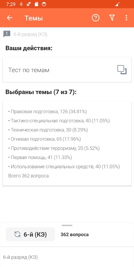 — режим «Темы», который позволяет пройти тест по выбранным темам категории