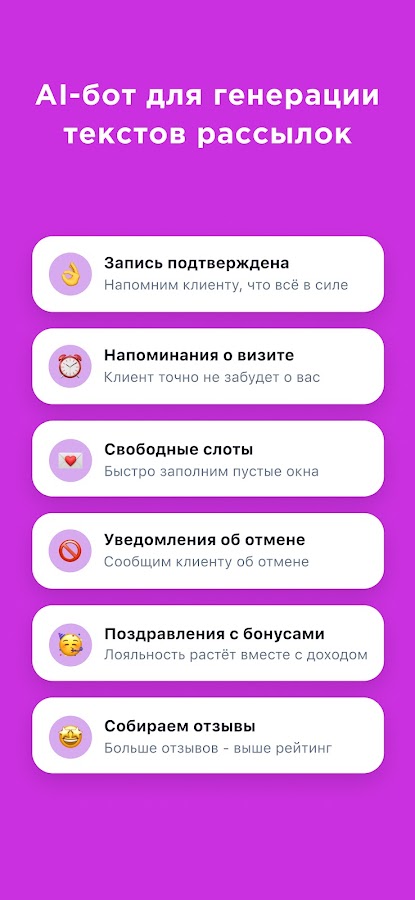 Нет времени написать клиенту с напоминанием о дате и времени записи? Наш сервис предоставляет опцию автоматической отправки уведомлений о предстоящей записи.