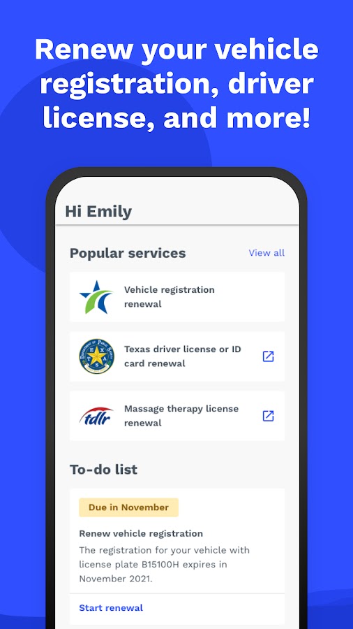 Позаботьтесь о своих правительственных задачах проще, быстрее и безопаснее с Texas by Texas (TxT) — официальным приложением Texas.gov.