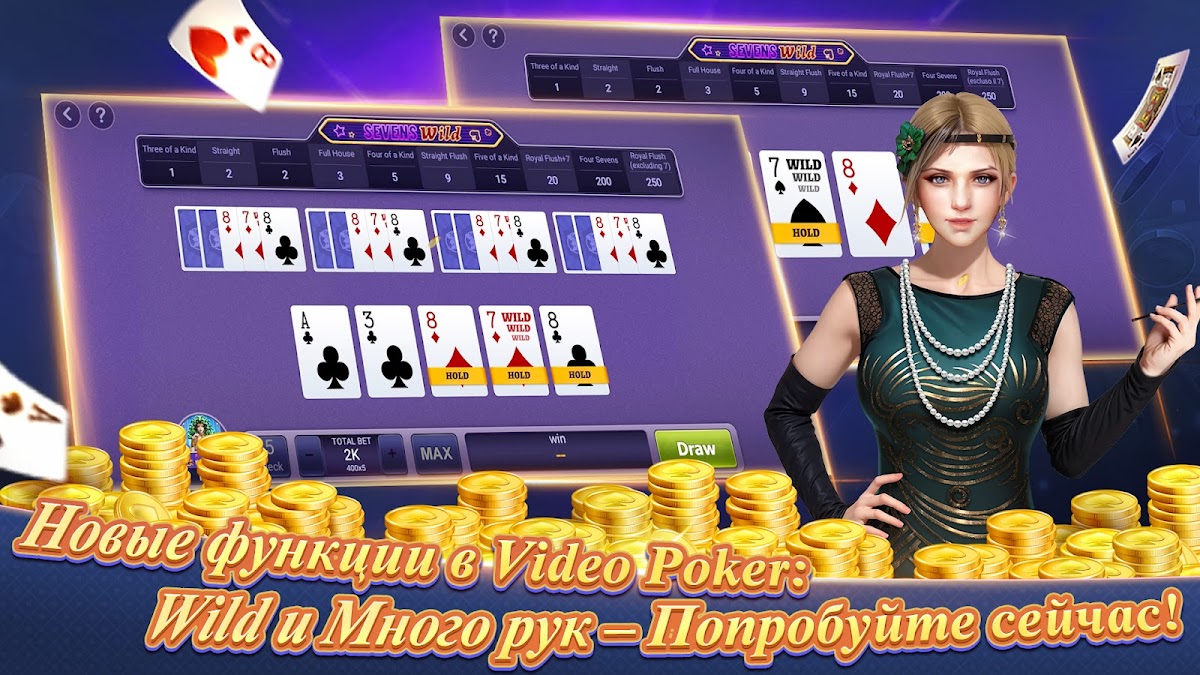 Покер с ежедневными испытаниями, игровыми автоматами и мини-играми.